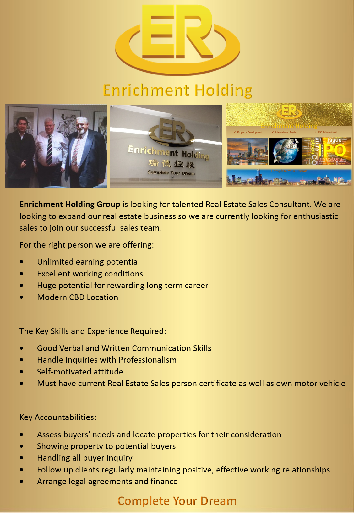 Enrichment Holding Group is looking for talented Real Estate Sales Consultant