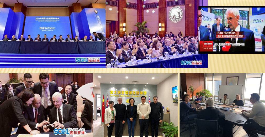 Australia Enrichment Holdings Group and Australia Global Star Corporation participated in China's first International Import Expo and signed a strategic cooperation agreement with Chengdu Grain Group. In the next five years, we will provide 100 million RMB worth of Australian agricultural products and wine to the domestic market through Chengliang Group. After the signing ceremony, Mr. Ron Hutchins, Agriculture Minister of Australia, was interviewed by China TV.