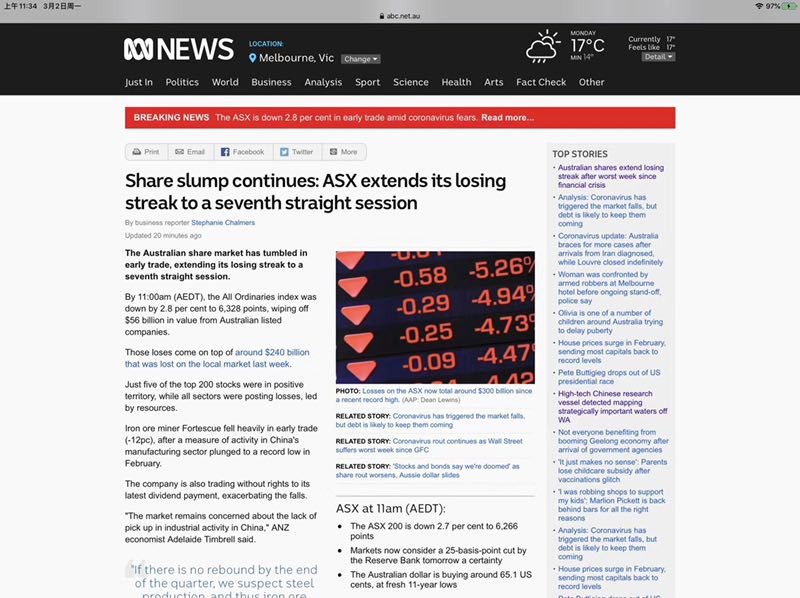 今日清晨,澳交所开盘下跌2.7%,澳洲下调利率迫在眉睫。