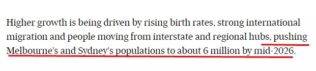 作为澳洲最大的两大城市,悉尼和墨尔本的人口增长十分迅速。根据Financial Review的报道,研究员Mark McCrindle预测,墨尔本和悉尼的人口到2026年中期时会达到600万左右!