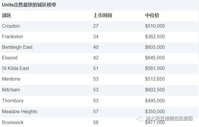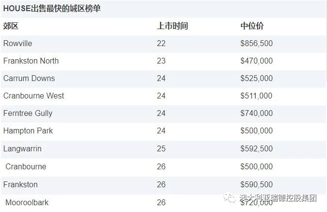低价的房屋往往出售更快。此外,首置业者印花税的减免政策更加促进了2017年及本年初低价房产的出售。墨尔本房产出售最快的区域: