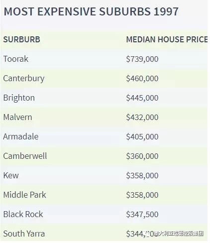 根据REIV的统计数据,墨尔本的城市扩张已经延伸到了市中心70公里开外,昔日房价洼地也早已随着强势的房价涨疯了!从1997到2017,20年来房价最为昂贵的十个城区其数目则更为惊人。墨尔本的中位房价在20年间增长了300% 。