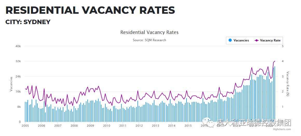 5月,悉尼空置率上升至4%。(数据来源:SQM Research)