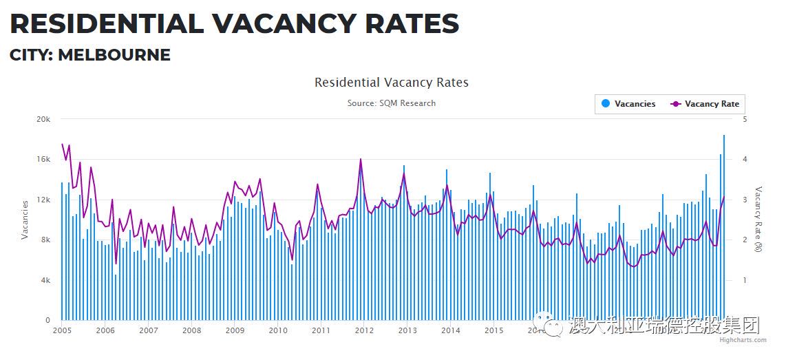 5月,墨尔本空置率上升至3.1%。(数据来源:SQM Research)