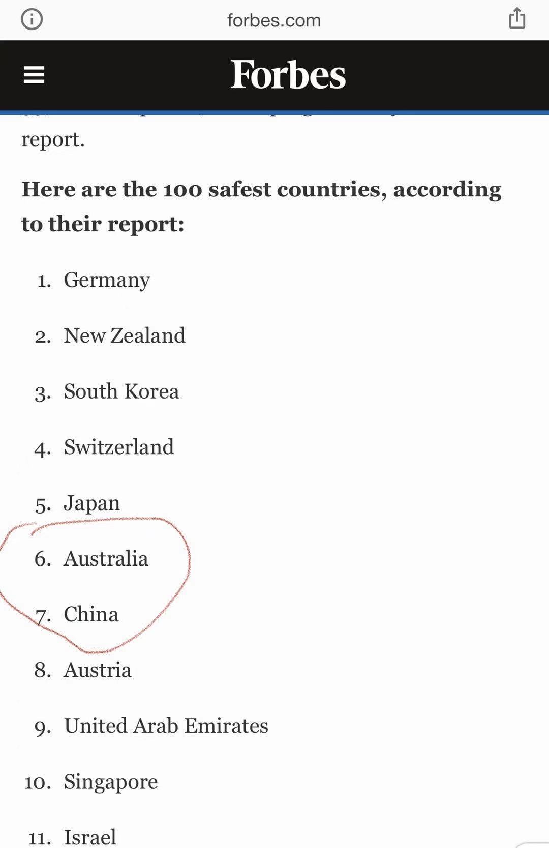 Forbes发新冠安全国家排行榜,澳洲第6,中国第7。 德国,新西兰,韩国,瑞士,日本前五。随着疫苗的推广,希望经济尽快恢复。