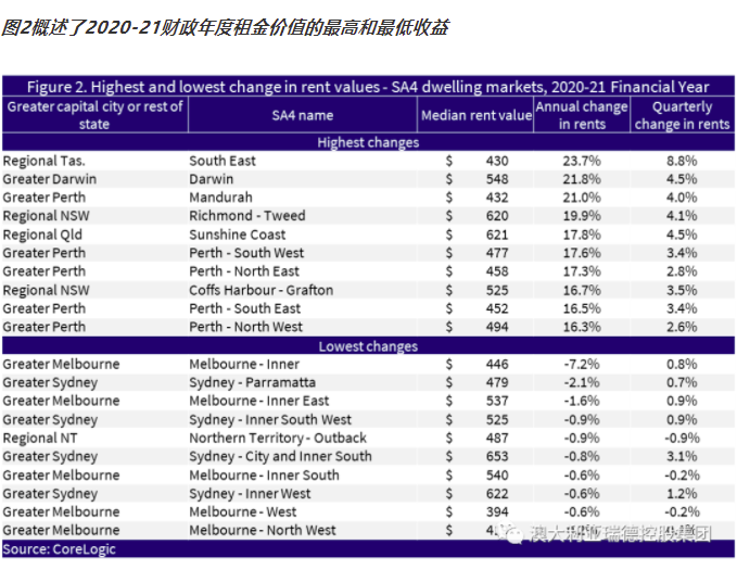 CoreLogic对88个SA4(指人口一般在10万到50万之间的社区)市场的数据显示,随着当前住房市场的上升,租赁市场的增长是十分普遍的。