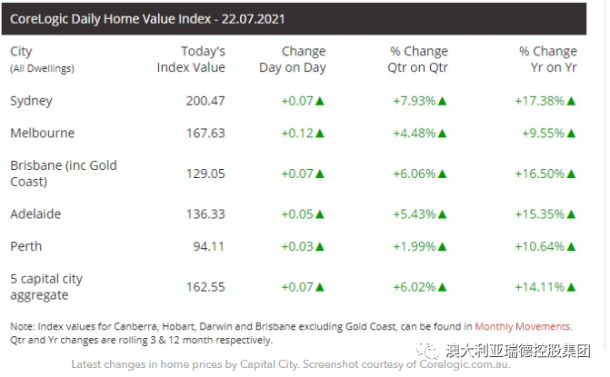截至 2021年3 月,澳大利亚的住宅房地产总价值增至 7.9 万亿美元。澳大利亚房价上涨 5.8%——自 2003 年 10 月以来的最高季度增长率。综合区域住宅市场价值高出 11.4%