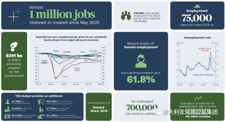 澳大利亚失业率在 2021 年2 月降至 5.8%,就业人数已恢复到大流行前的水平,因为随着封锁措施的缩减,劳动力市场迅速复苏。