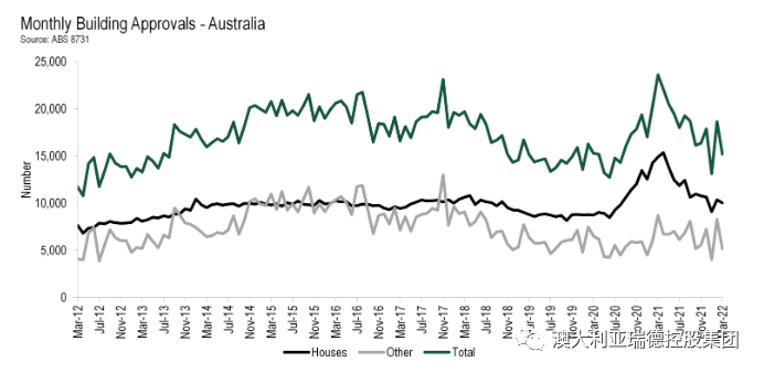 本周现金利率上升对建筑审批的影响,可能需要未来6个多月才能体现在这组数据中。