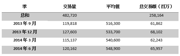 根据澳大利亚统计局数据显示, 在2013-2014年间总共有482,720笔交易量◦平均房价成长6.3%, 由20139月份的AUD$516,300攀升到2014年6月份的AUD$548,900◦