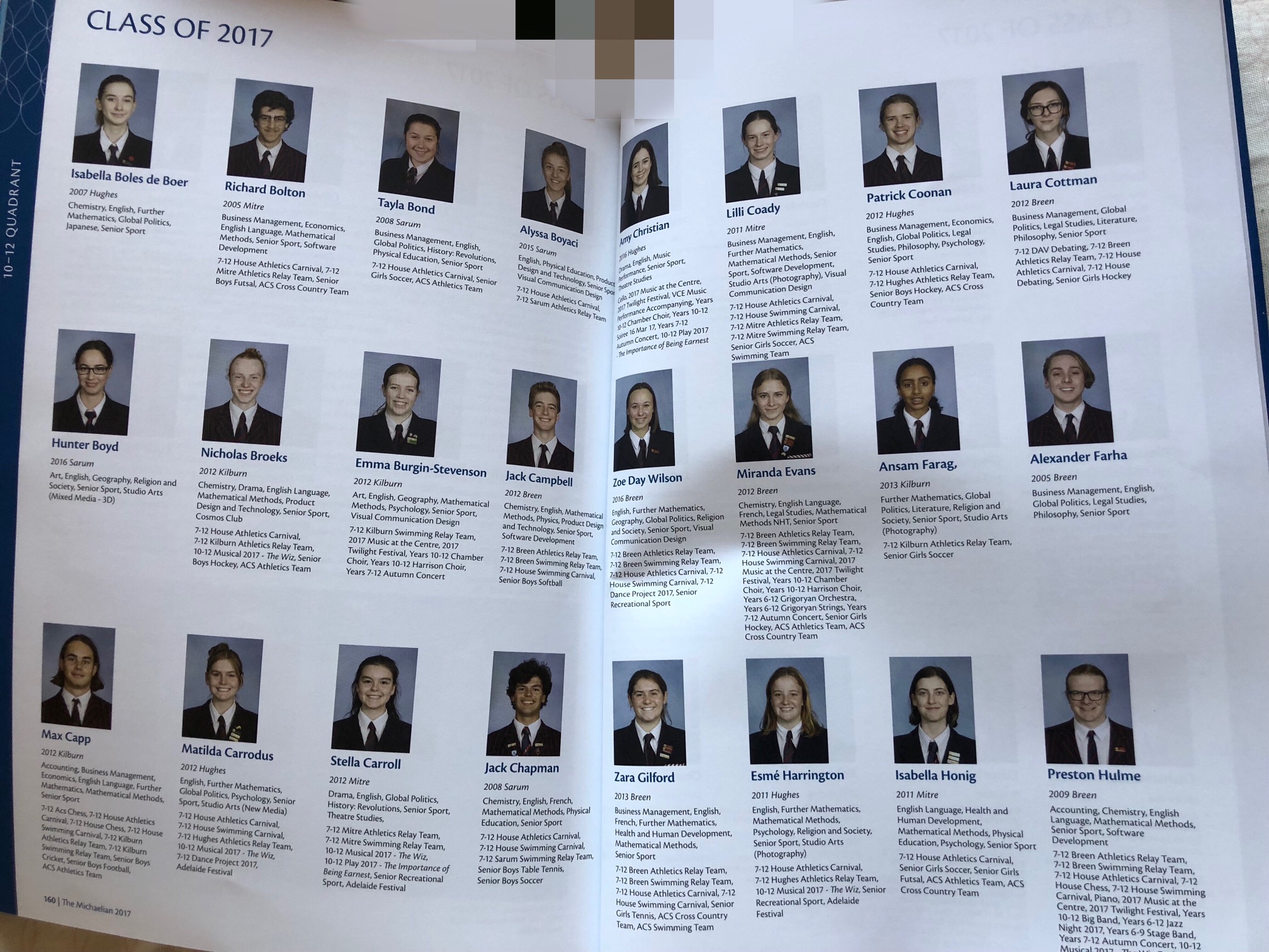 澳洲学校每年都会出版一份年度总校刊,主要是向家长以及董事会汇报过去的一年里都举办了哪些活动、
