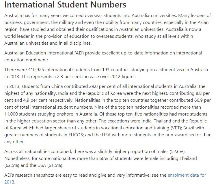 据报道,澳洲海外留学生数量逐年上涨。其中,中国留学生的比例占据了留学生总体数量的百分之三十。