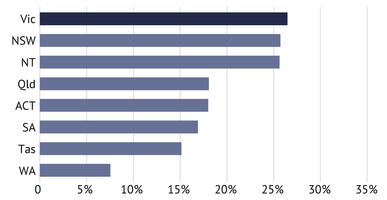来自CommSec的最新国家报告显示,维多利亚州的经济增长率比其10年的平均水平高出26.5%,比去年3月季度的新南威尔士州还高。报告称:“由于人口增长强劲,维多利亚处于首位,推动了维州广泛的建筑活动,尤其是房屋建设活动。”
