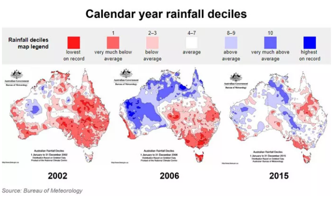 干旱期澳大利亚各地降雨情况
