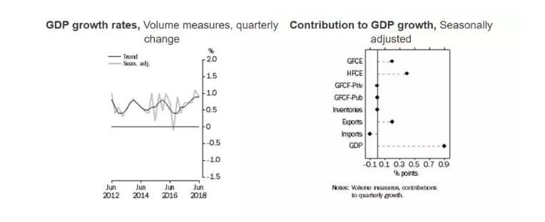 9月初,澳大利亚统计局(Australian Bureau of Statistics)发布的最新全国账户数据显示,在经历了2016到2017财年2.1%的增长后,2017到2018财年,澳大利亚实际GDP增长率达到2.9%,实现连续27年来从未间断过的经济增长,成为主要发达经济体中的唯一一个。