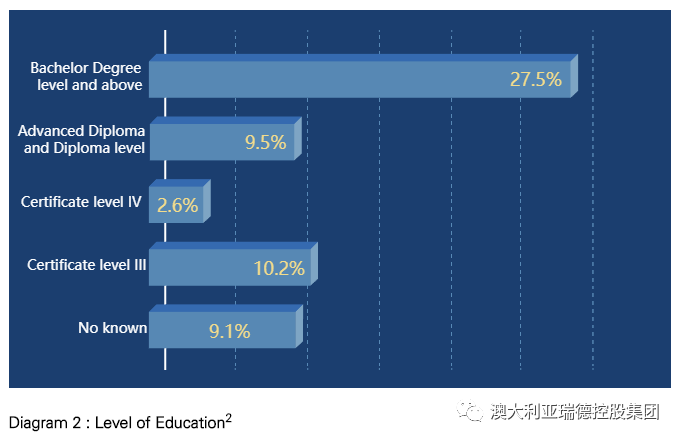 且根据澳洲统计局数据,墨尔本青壮年人居多,且人口素质好,受教育程度高,大半部分接受过高等教育,城市整体社会环境好。
