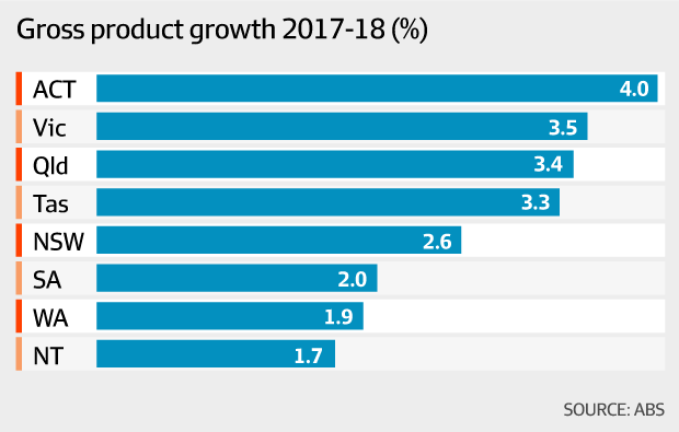 在所有地区中,北领地的经济增长最为低迷,2017/18财年的增长率仅为1.7%。