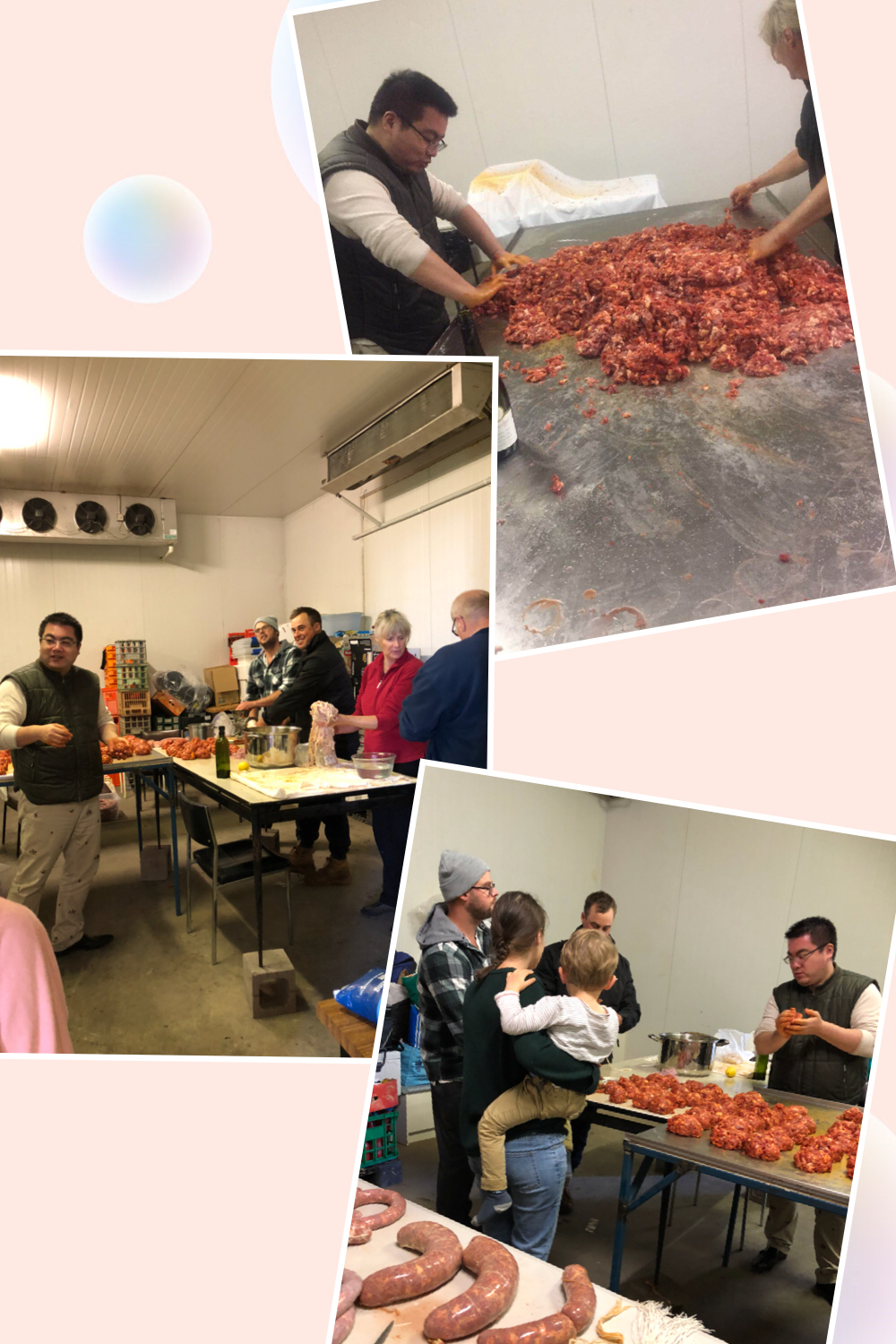 每年的冬季,澳洲农场主们为了庆祝丰收,尤其是传统的意大利家族,都会远近三十几个各类农场主家庭聚会在一起,自己准备丰盛的食物,还带来各自农场上的土特产,我们也过来一起参加,帮忙做腊肠,非常有趣!几大家族的农场主,在澳洲均有上百年的历史,家族从事各类农场的经营,各类水果,牛羊,农作物等等。