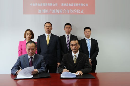 中食安公司加快进口奶粉上线“食品安全多维彩码追溯系统”工作,给进口奶粉贴上多维彩码“身份证”,为消费者提供贴有多维彩码可追溯的原产地进口奶粉,消费者只要扫奶罐上的多维彩码即可马上清楚奶粉从原产地到消费者手中的全过程。4月22日上午,中食安副总裁廖述斌代表中食安食品贸易有限公司与澳洲岛食品贸易有限公司董事长王西蒙在北京签订“澳洲原产地奶粉合作协议”。