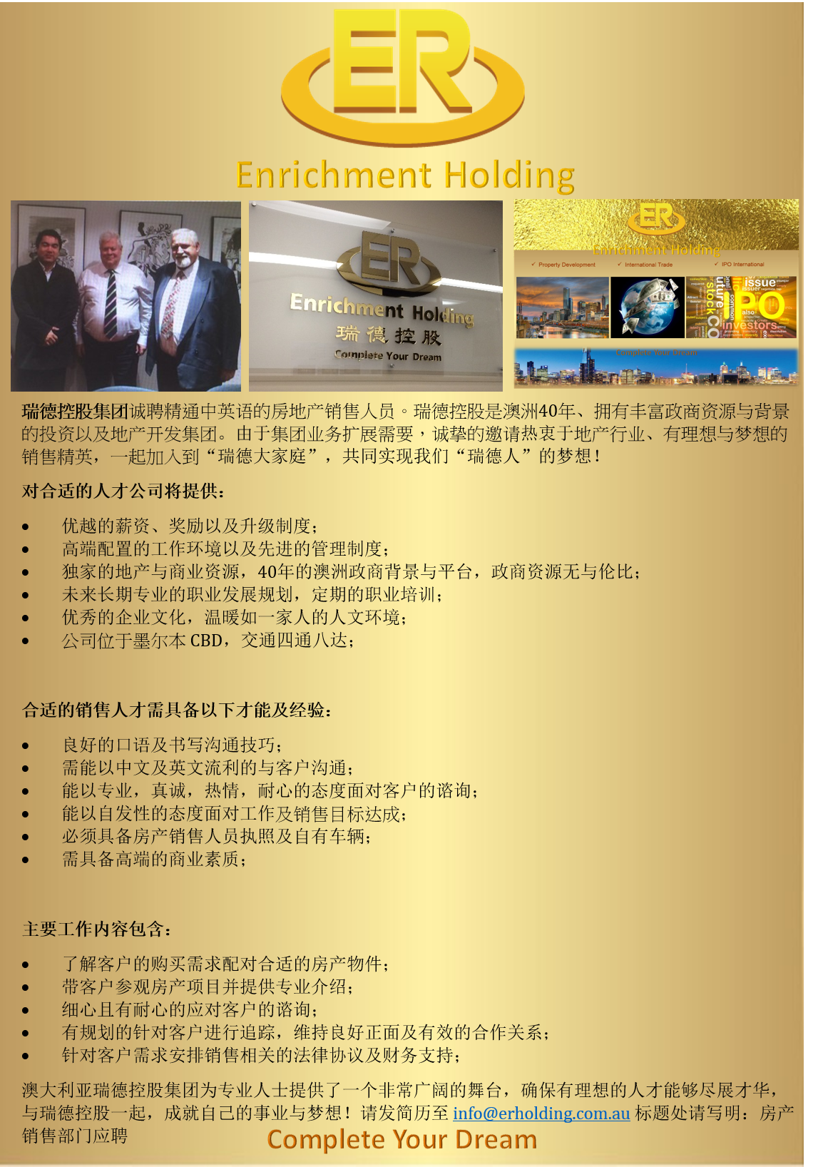 瑞德控股集团诚聘精通中英语的房地产销售人员