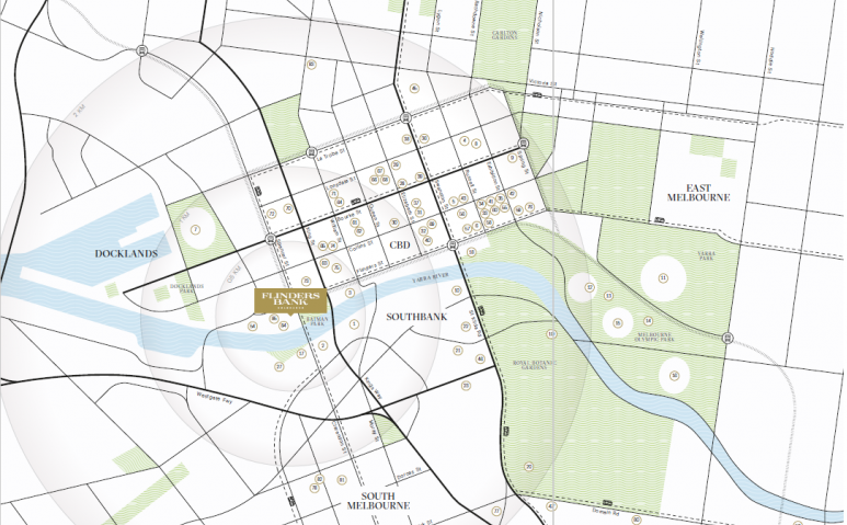 弗林德斯岸边位于墨尔本中央商务区的Hoddle Grid边缘,地理位置优越,拥有城市所提供的一切,以及南岸的娱乐,艺术和文化区。 距离墨尔本最好的餐厅,购物中心,花园,学习机构,娱乐和体育赛事仅有很短的步行路程或电车车程。