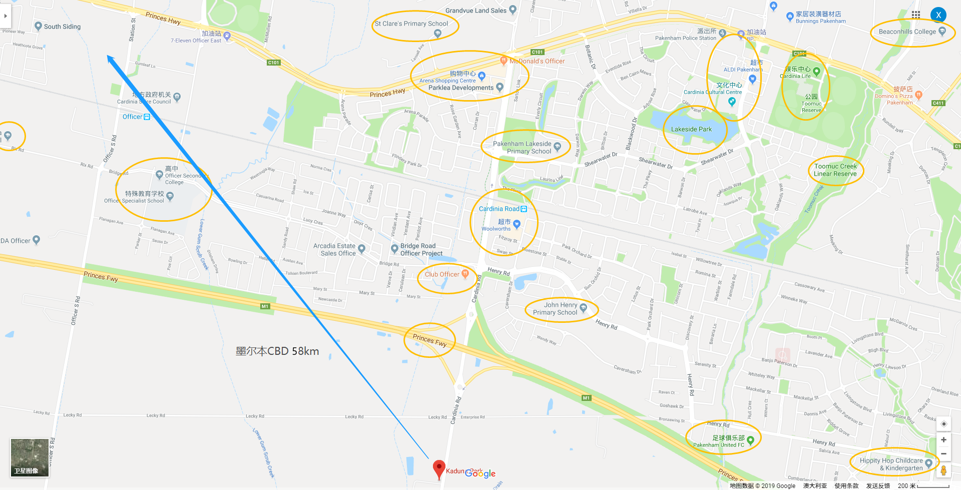 从Pakenham Bypass(M1)或Cardinia Road Train Station火车站前往市区,两地都在附近。或沿着王子高速公路探索卡迪尼亚郡。