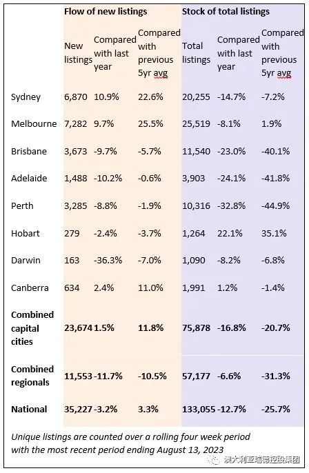 截至8月13日的四个星期内,添加到澳大利亚住房市场的新上市数量高于前五年的平均水平3.3%;这是自去年9月以来首次看到房源流量超过五年基准线。