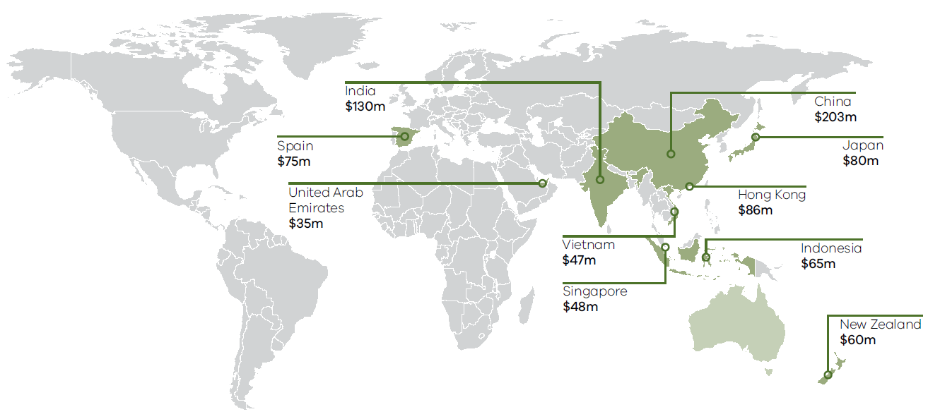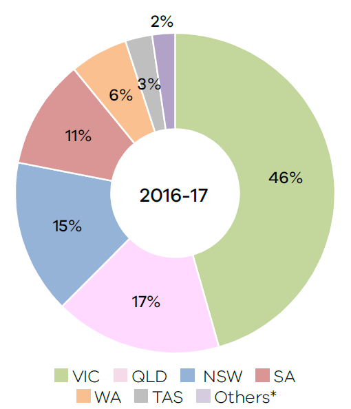 夏季核果产业获得了中国大陆油桃的市场准入,并成功从维多利亚州出口了2,144吨油桃。 香港是最有价值的核果出口市场,出口总量为3,314吨,价值1600万美元。维多利亚州蔬菜出口在2016 - 17年间增长了17%。 新鲜蔬菜出口的最大价值市场是日本,占蔬菜出口总量的33%。