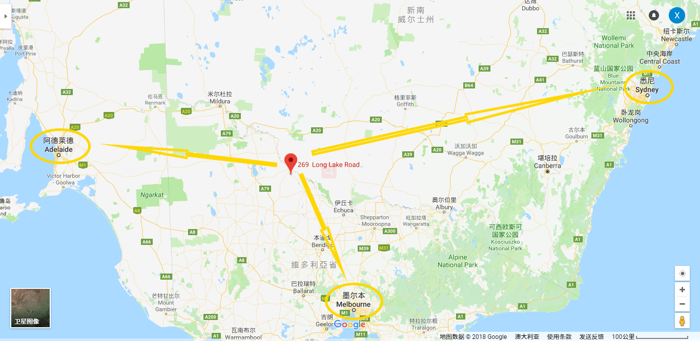 地理位置——该农场位于维州北部,地处维州、新州及南澳交界处,相距三大省会城市接近,交通方便,位置极佳。