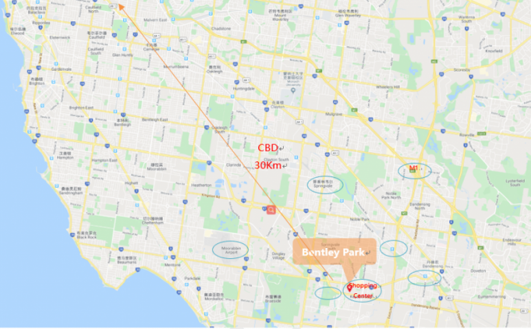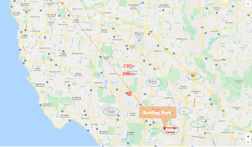 Bentley Park位于Keysborough正中心, 步行10分钟即到达商业中心,步行5分钟即可抵达多个公车站及公园。Keysborough位于墨尔本发达的东南区,距离CBD约31公里,距离火车站Yarraman和Dandenong约3公里。 您可以通过M1快速路在30分钟即可内抵达CBD。Keysborough近几年一直是置业者的首选地区。这里有便利的交通和发达的绿地,是现代化和自然景观的完美结合。